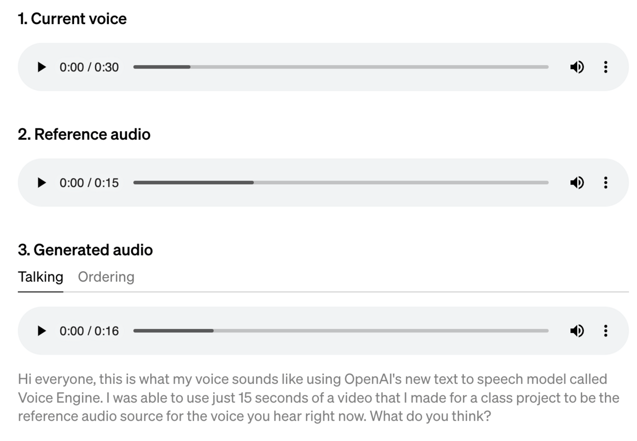 In a sea of voice-generation tools, OpenAI's new Voice Engine tool has taken this to a whole new level, generating incredibly realistic voice clones with just 15 seconds of audio.