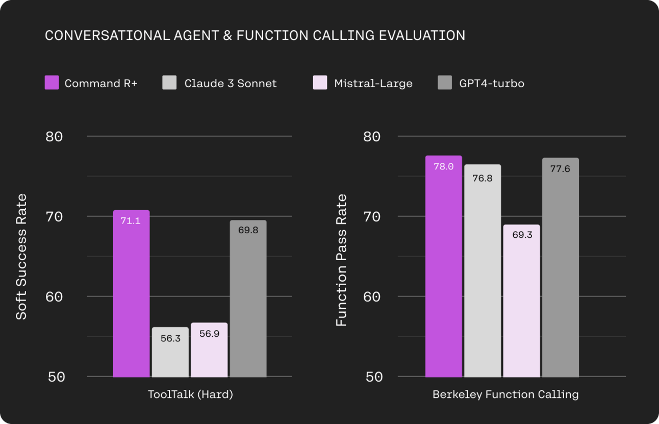 Plus, Command R+ surpasses the more expensive models in function calling evaluations and offers a 128K context window.
