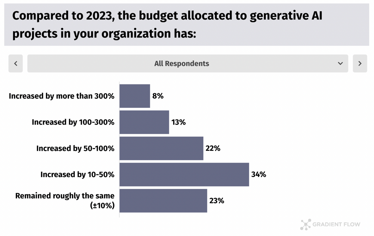 A fifth of technical leaders reported over 300% growth in budgets allocated to GenAI initiatives.