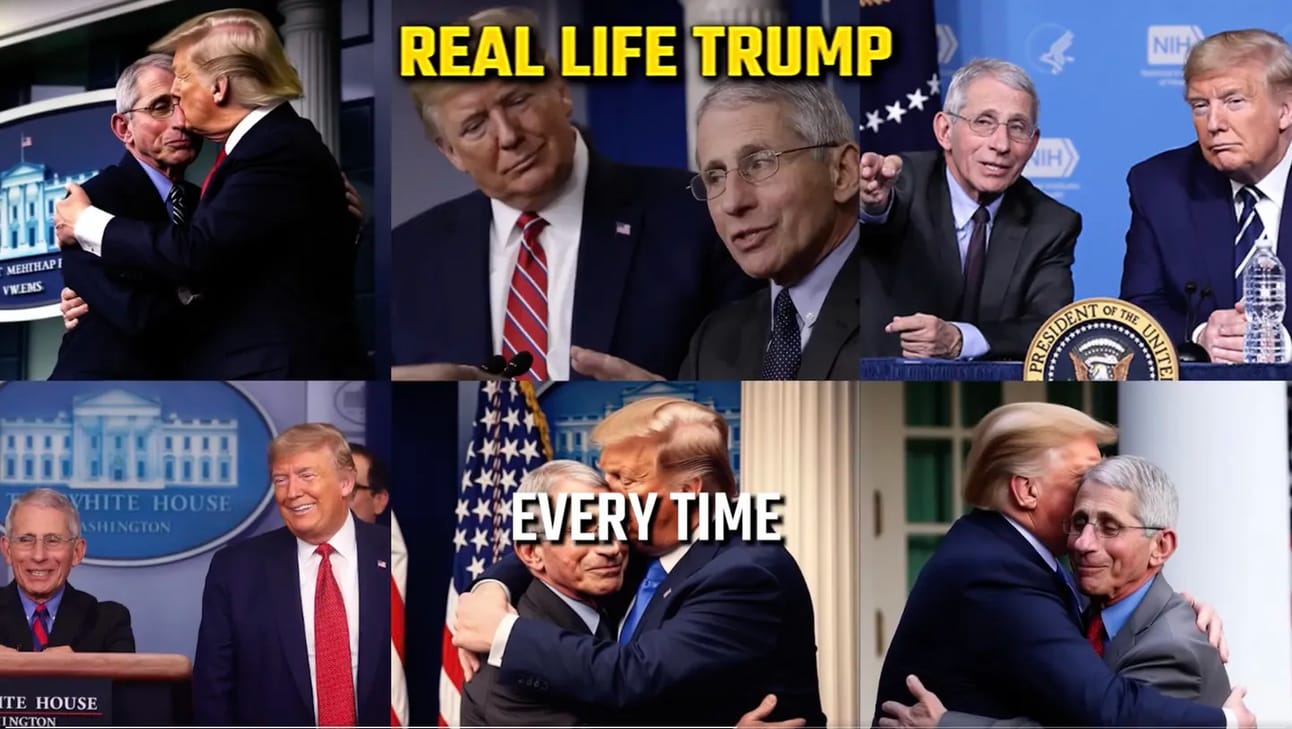 On June 5th, this video was posted on the βDeSantis War Roomβ Twitter account. It was a fake campaign ad targeting Donald Trump using doctored images of him embracing Anthony Fauci.