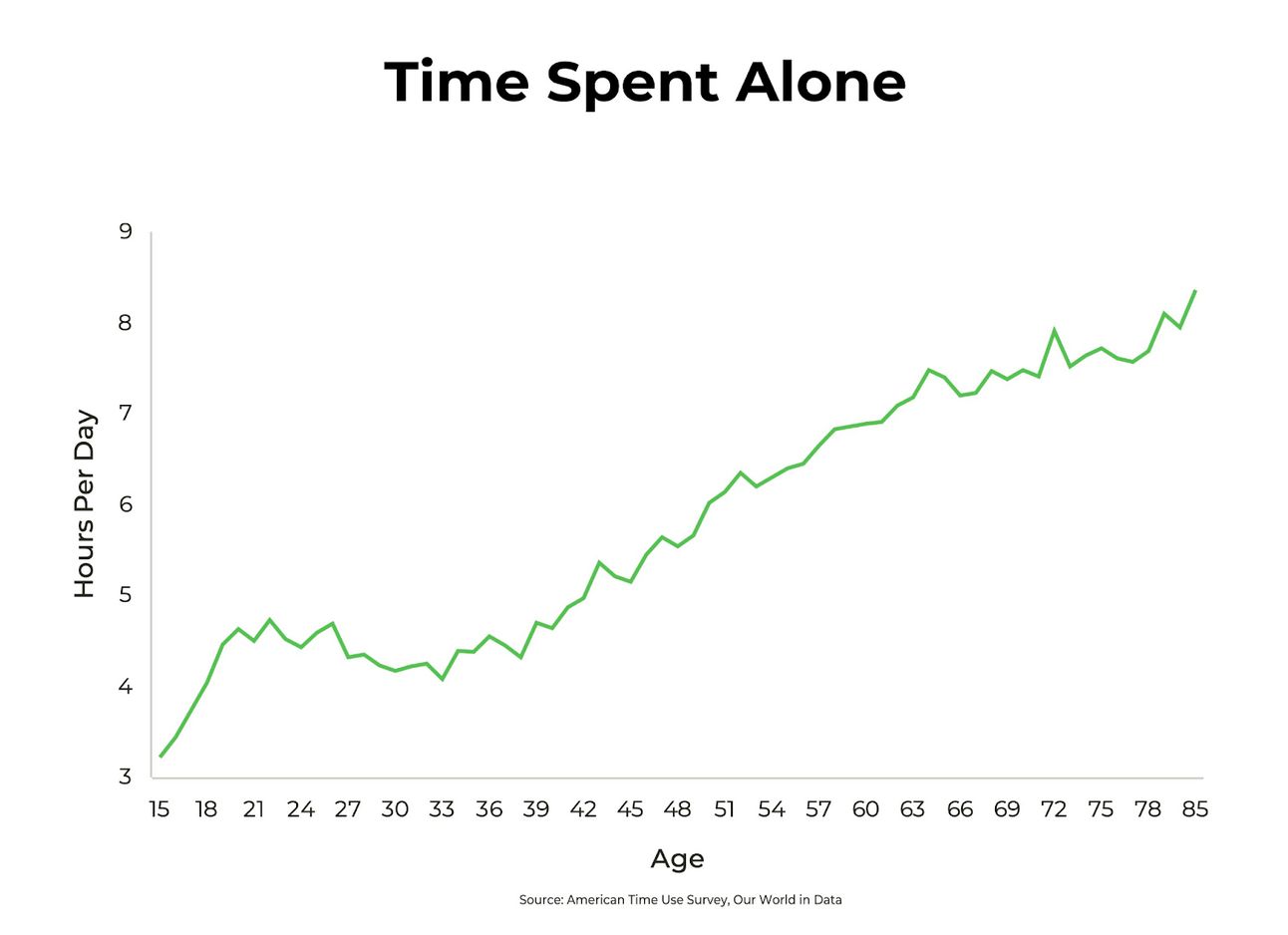 The takeaway is simple - the older we get, the more time we spend with ourselves :(