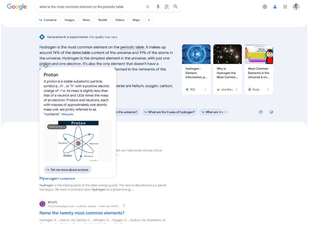SGE responses for science, history, and other topics will soon have definitions for key terms. Hover over words to see pop-up definitions, images, and diagrams for simple learning.