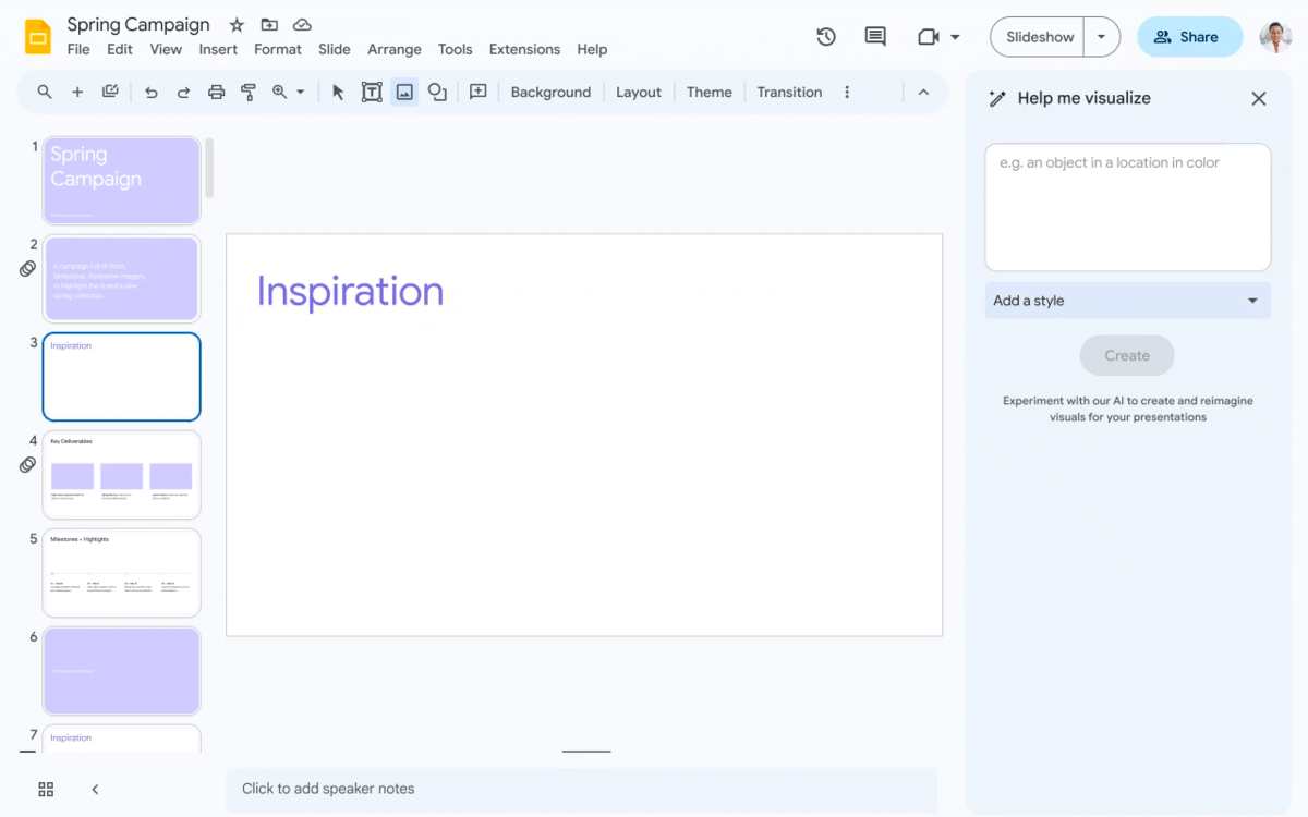 Slides: Marketing decks just got way nicer - through DuetAI, you can create images that fit your needs, even if that image never existed before.